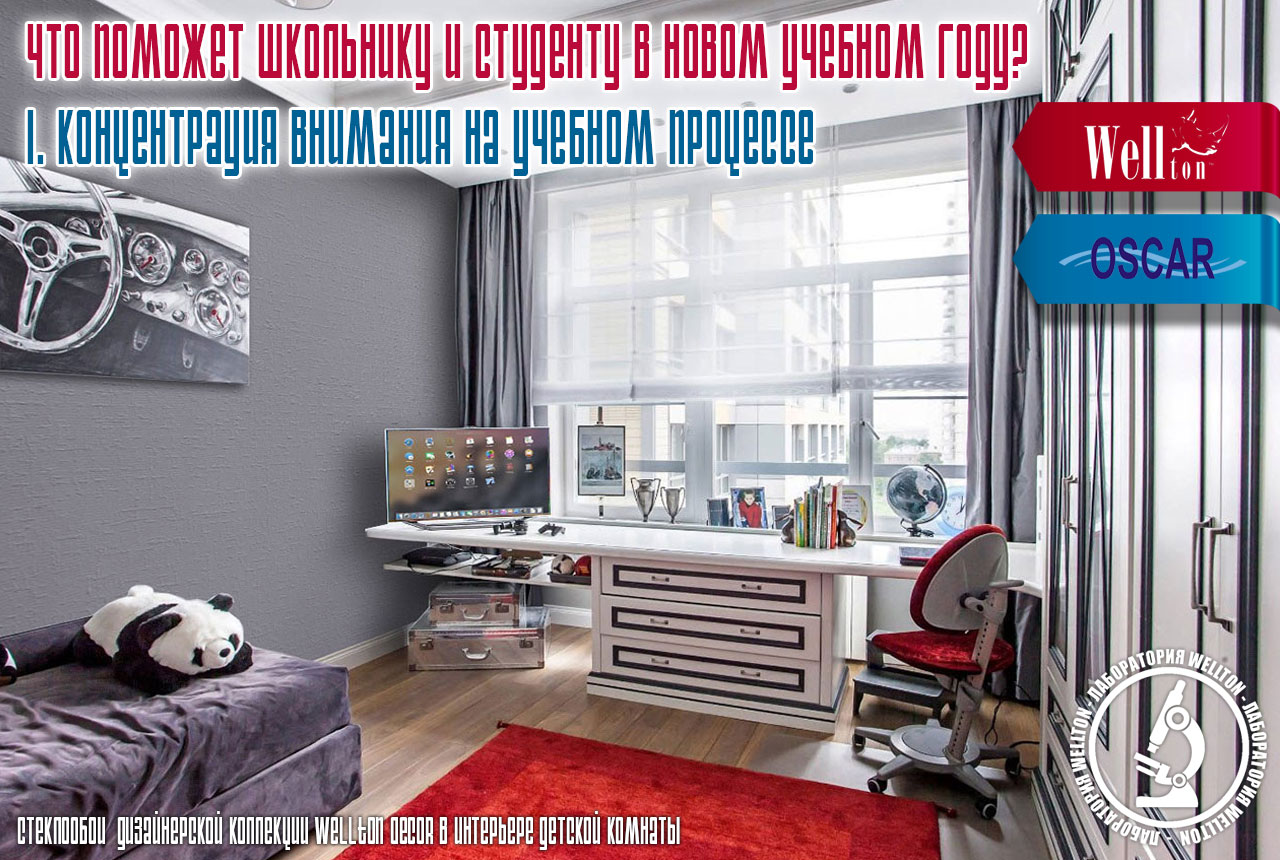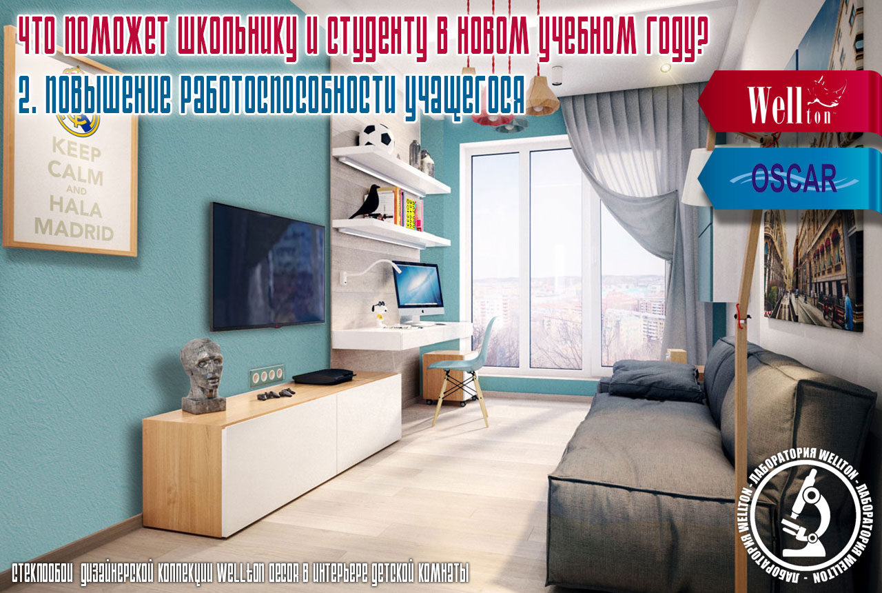 Многочисленные исследования демонстрируют, что дети гораздо лучше и продуктивнее занимаются учёбой, когда их ничего не отвлекает. А ещё давно известно, что цвет может оказывать весьма существенное воздействие на людей. Какие-то цвета способны повышать или понижать аппетит, какие-то возбуждают, а какие-то наоборот успокаивают. Именно поэтому замена привычных обоев на фактурные стеклообои под покраску поможет повысить работоспособность школьника, благодаря правильному подбору цвета краски для окрашивания. Изменить цвет и оттенок обычных обоев невозможно, а стеклообои Wellton и Oscar можно перекрашивать без проблем более 30 раз! Благодаря этому свойству наших стеклообоев, вы сможете подобрать самый комфортный цвет именно для вашего ребёнка, который будет способствовать повышению его работоспособности.