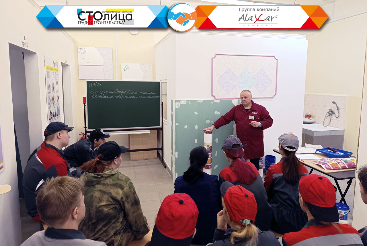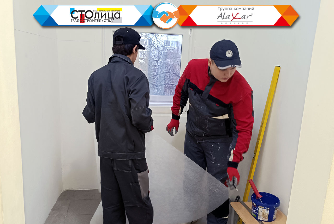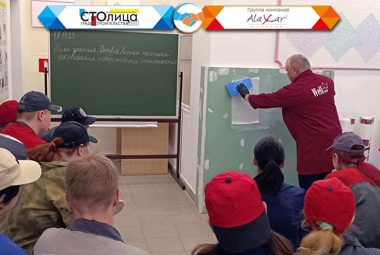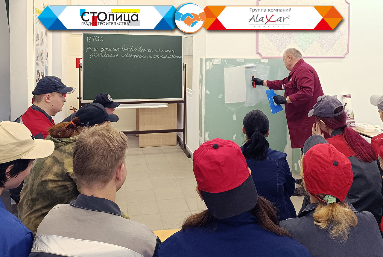 Темой этого расширенного занятия стало ознакомление с современными отделочными материалами высокой степени готовности и технологий работы с ними. Как того требует учебный процесс, занятие было разделено на теоретическую и практическую часть, позволяющую закрепить полученные в теории знания на практике. Благо достойное техническое оснащение ГБПОУ ОКГ «Столица» позволяет выполнить на любые виды отделочных работ, в том числе и с использованием наших инновационных материалов. Это занятие не является единичным обособленным мероприятием, поскольку оно включено в единую учебную программу, разработанную КГ «Алаксар» совместно с ГБПОУ ОКГ «Столица» в прошлом году.