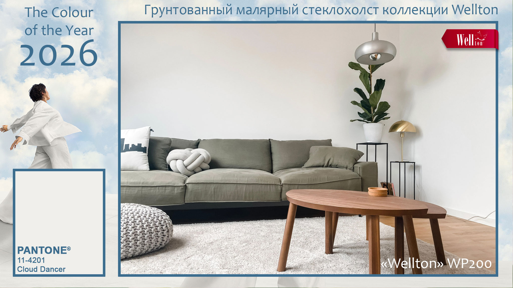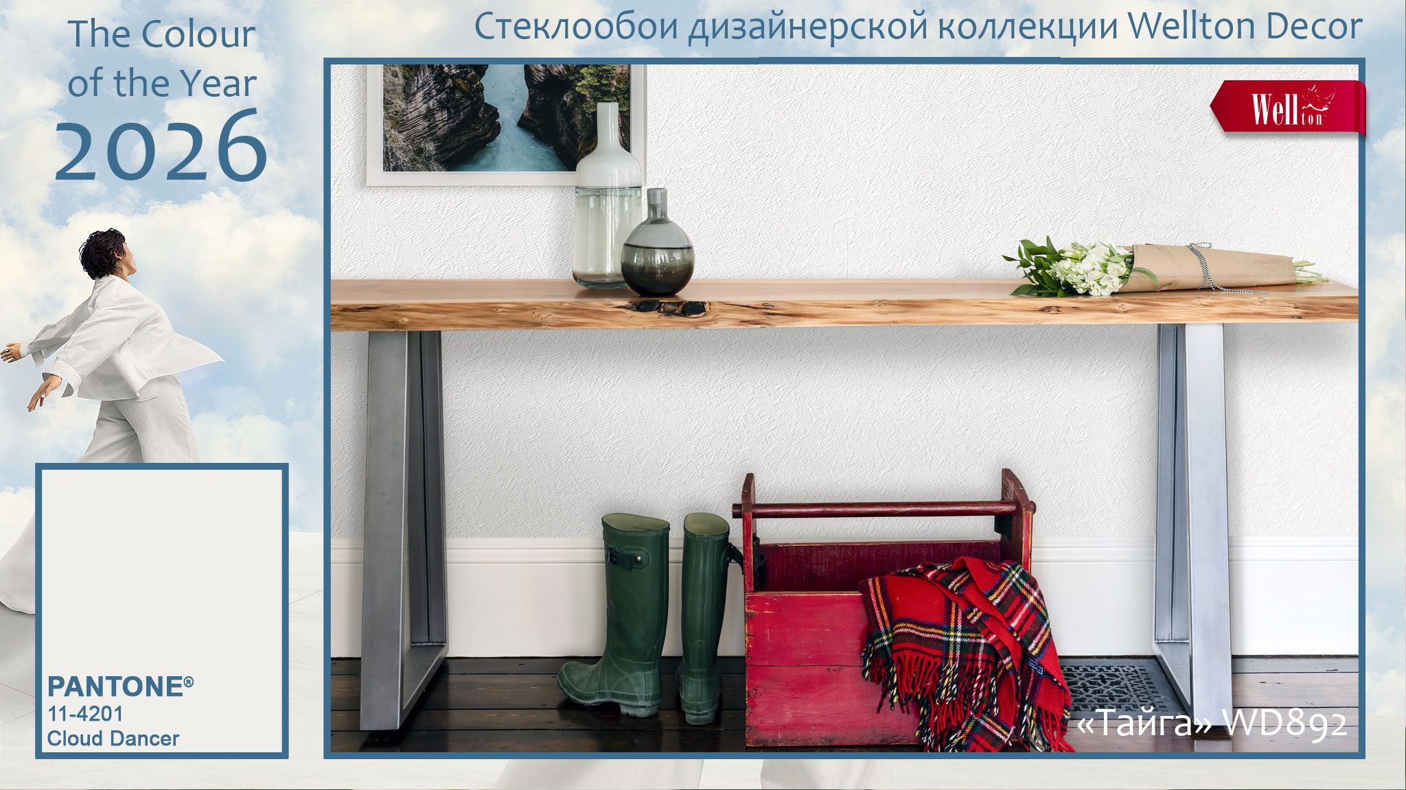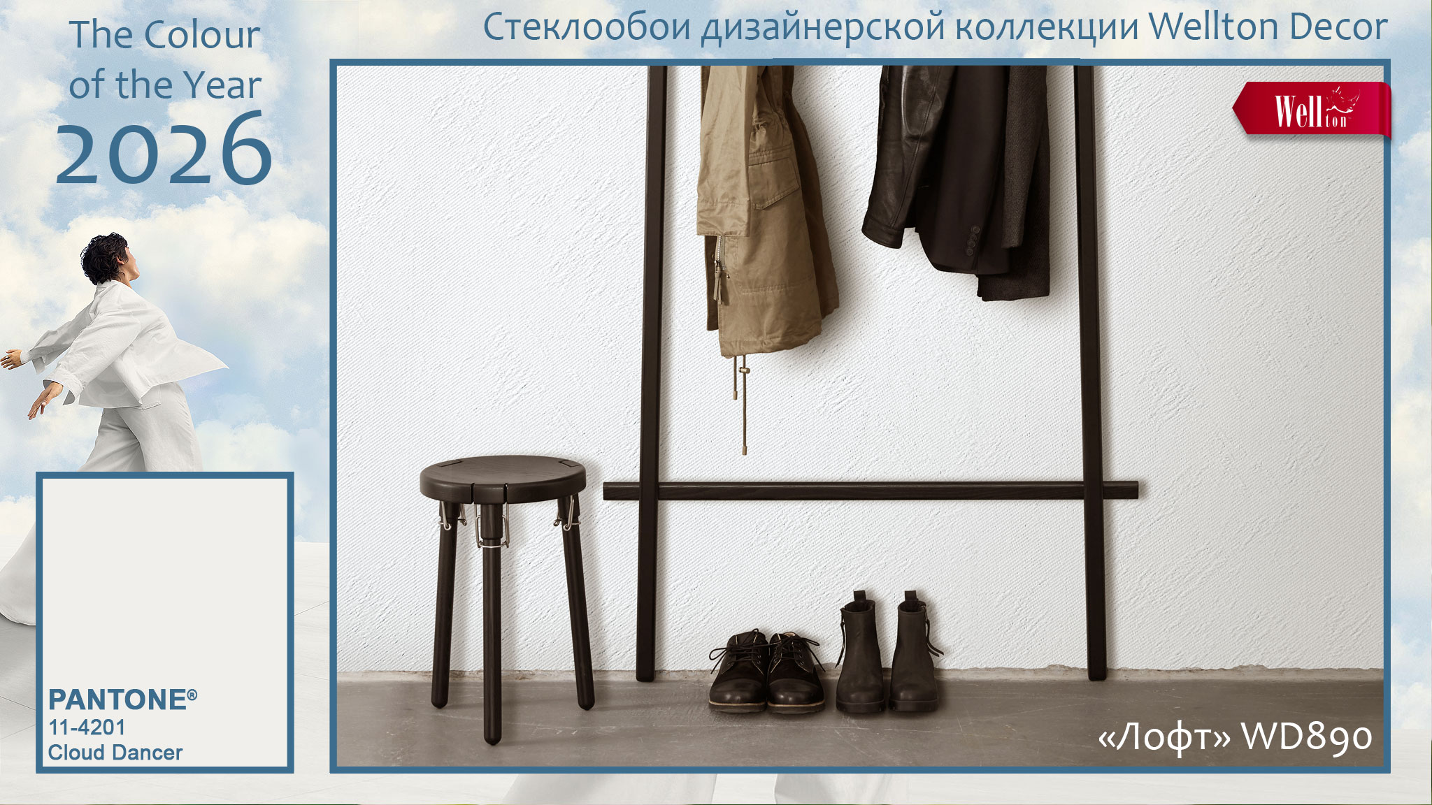 Цвет 2026 года «Cloud Dancer» может быть многоликим, если использовать его на высокорельефных фактурах стеклообоев Wellton и Oscar. Благодаря тканому плетению полотен дизайнерских и классических стеклообоев, белый цвет на них может варьировать не только свою яркость за счёт светотени, но и даже впитывать в себя другие оттенки, отражая цветовую гамму интерьера. А на гладких фактурах малярных стеклохолстов и флизелина Wellton, Oscar и КРЕПЫШ белый характер «Cloud Dancer» проявляет себя с неожиданной стороны, позволяя создавать идеальные фоновые решения для стильных интерьеров. Ведь белый цвет и его многочисленные оттенки в интерьере – это вечная классика, которая вряд ли в ближайшие годы бесследно исчезнет из модных трендов.