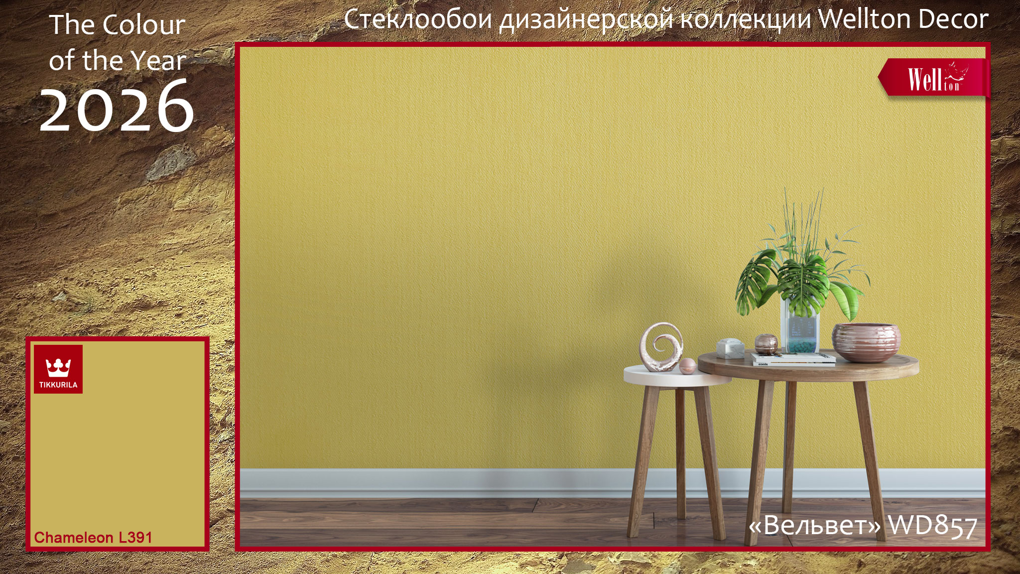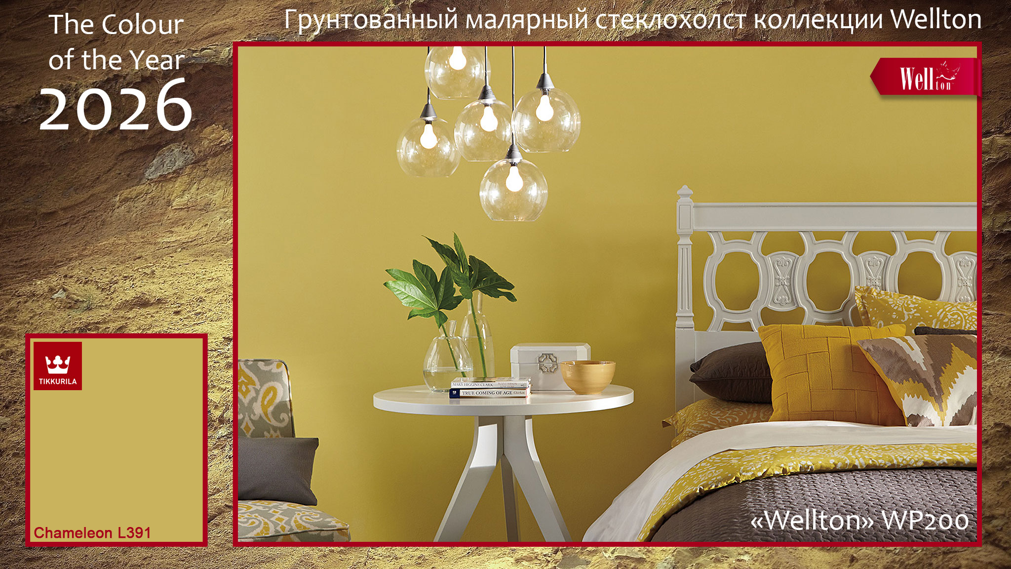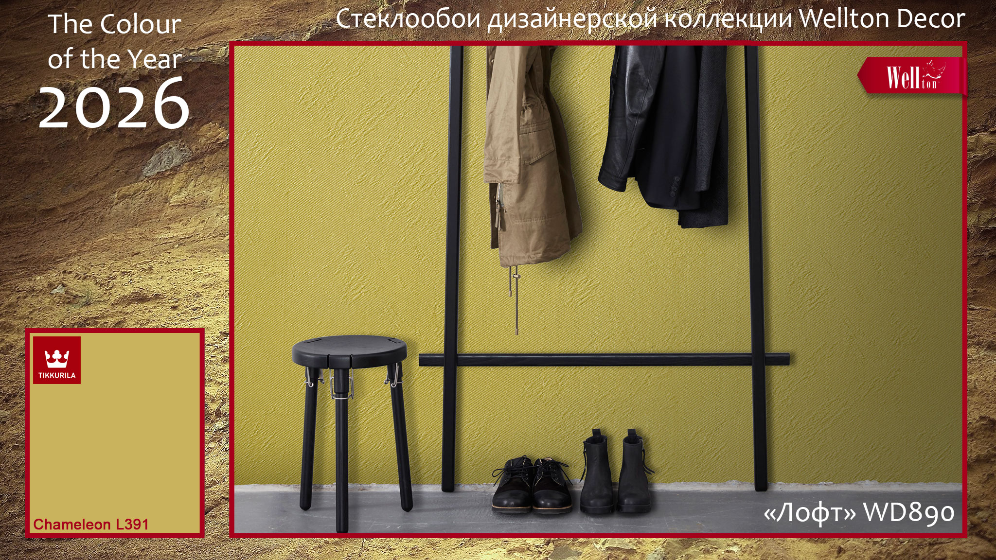 Благодаря своей многогранной натуре, цвет Chameleon L391 потрясающе зарекомендовал себя при окрашивании фактурных поверхностей высокорельефных стеклообоев классической и дизайнерской коллекции Wellton. В дополнении к меняющемуся освещению, цвет, словно настоящий хамелеон, трансформируется из-за светотени, создаваемой фактурными полотнами стеклообоев Wellton Decor, Wellton Optima и Oscar. А с гладкими фактурами малярных стеклохолстов и малярных флизелинов цвет формирует восхитительные фоновые полотна для создания стильного дизайна интерьера. В этот цвет, кстати, отлично колеруется наша уникальная краска Oscar для стеклохолста, которая позволяет не только создать идеально гладкие стены, но и получить стильный оттенок интерьера в 2026 году.