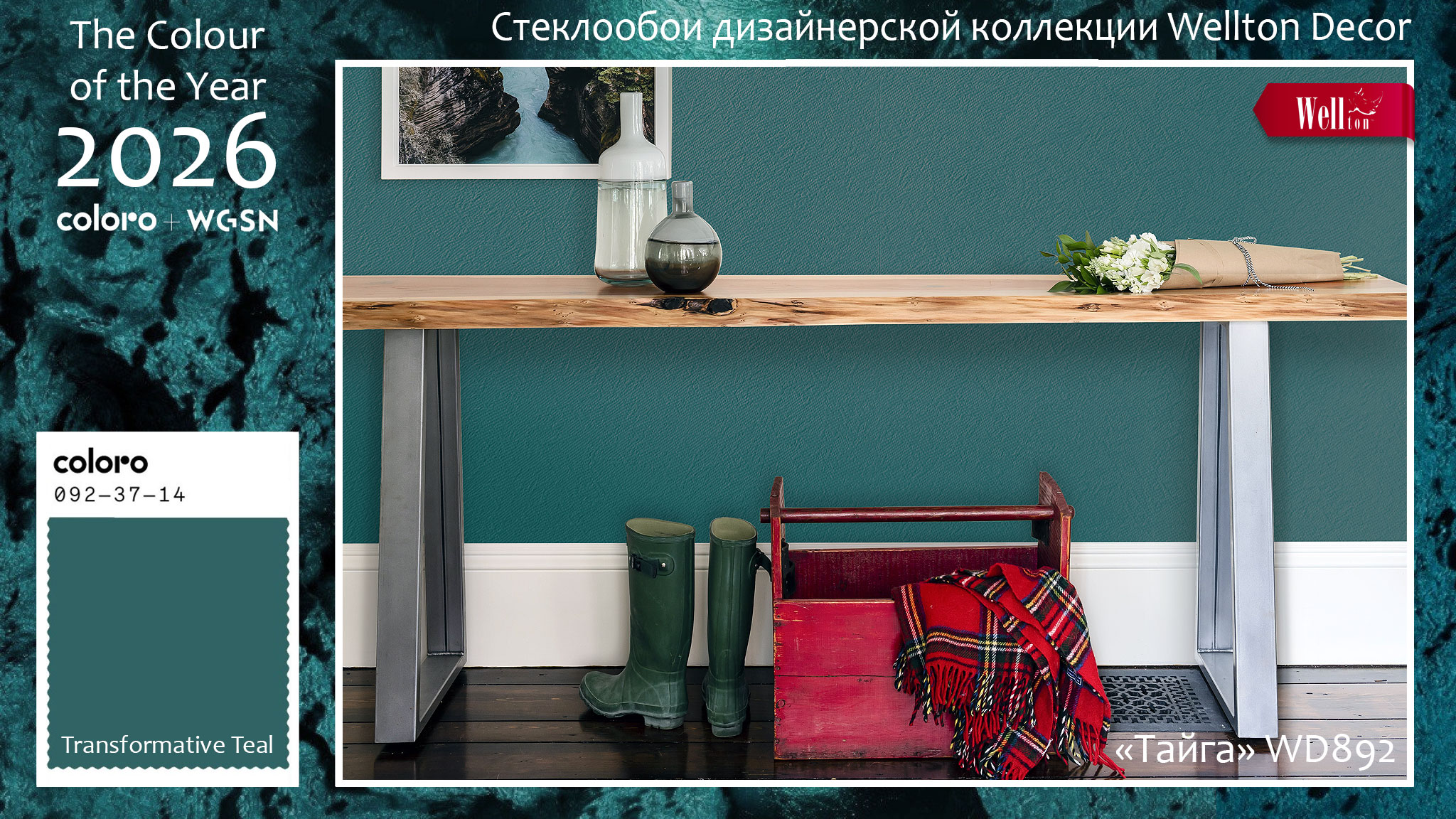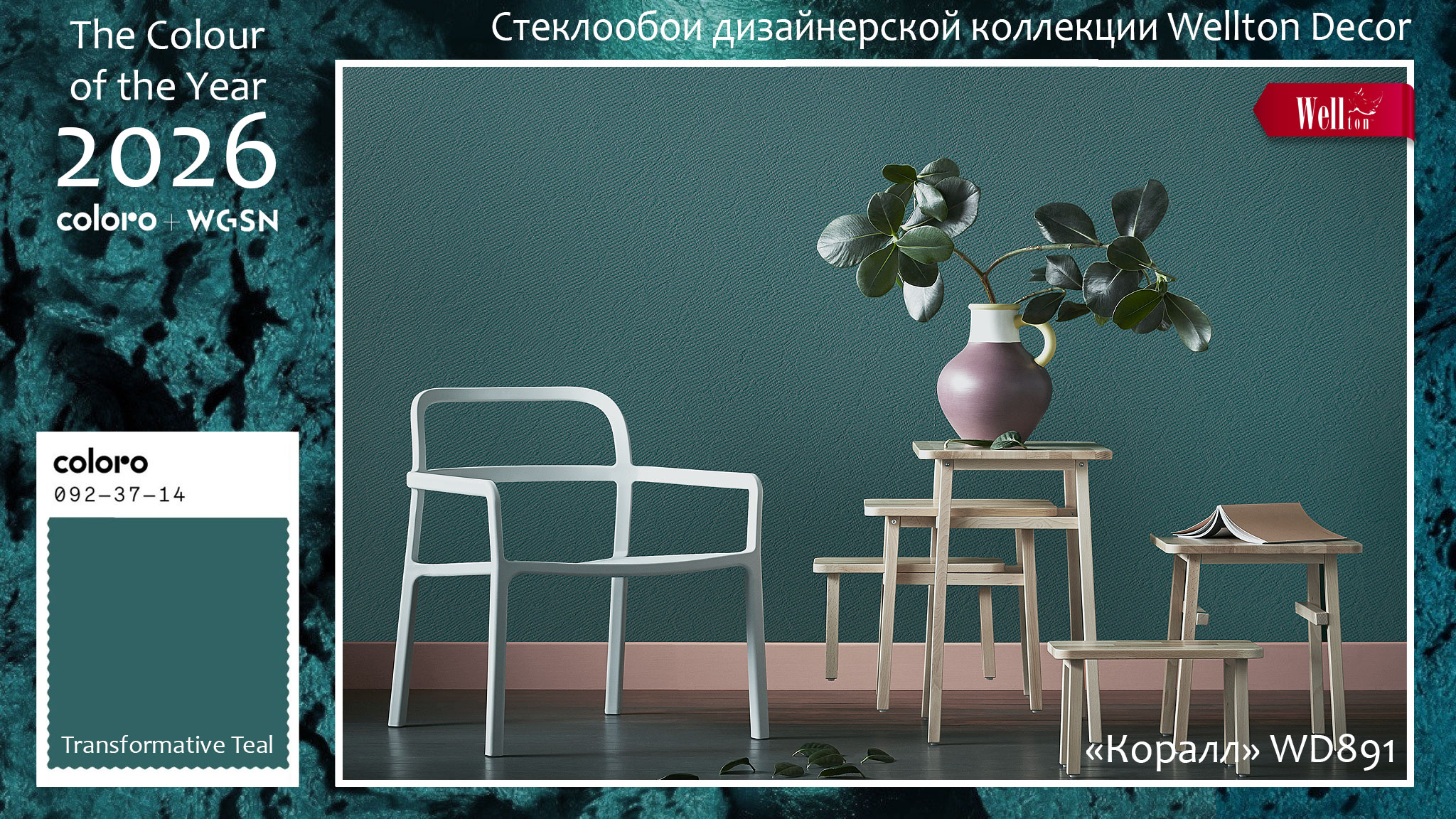 В последние месяцы прошедшего 2025 года эксперты WGSN и Coloro также наблюдали растущий интерес к зеленому и синему цвету во многих проявлениях нашей жизни, включая выбор цветовой гаммы одежды и интерьера. И именно поэтому деликатное соединение синего и зелёного в главном цвете 2026 года гарантирует «Transformative Teal» успех. Потребители достигли истощения в эпоху избыточной стимуляции и сокращения внимания, усугубленного усталостью от негативных новостных циклов и адаптацией к постпандемическому миру. В результате интерьеры, в которых мы живём, должны найти новые способы для создания гармоничной и чистой среды обитания для каждого из нас.