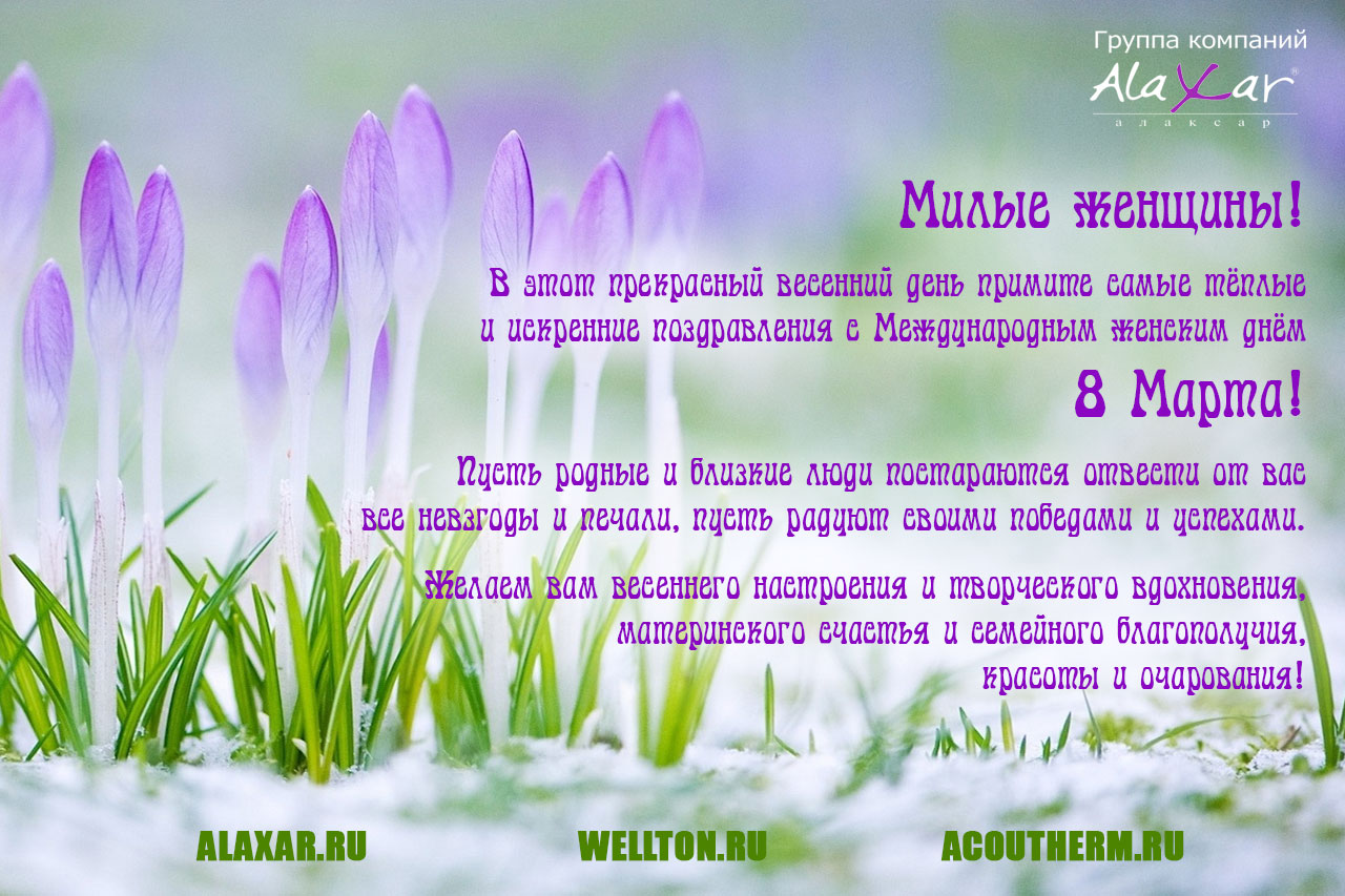 Милые женщины! В этот прекрасный весенний день примите самые тёплые и искренние поздравления с Международным женским днём 8 Марта!