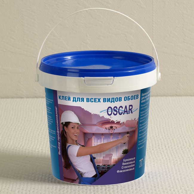 Сухой клей «Oscar» для всех видов обоев в герметичном ведре. Вес нетто — 400 гр.